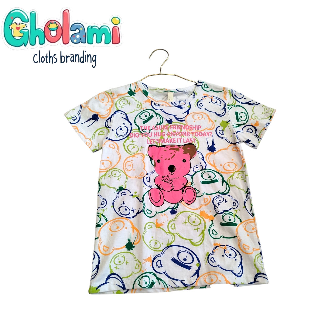 تیشرت دخترانه مدل چاپی کد Gh12-50 طرح تدی صورتی